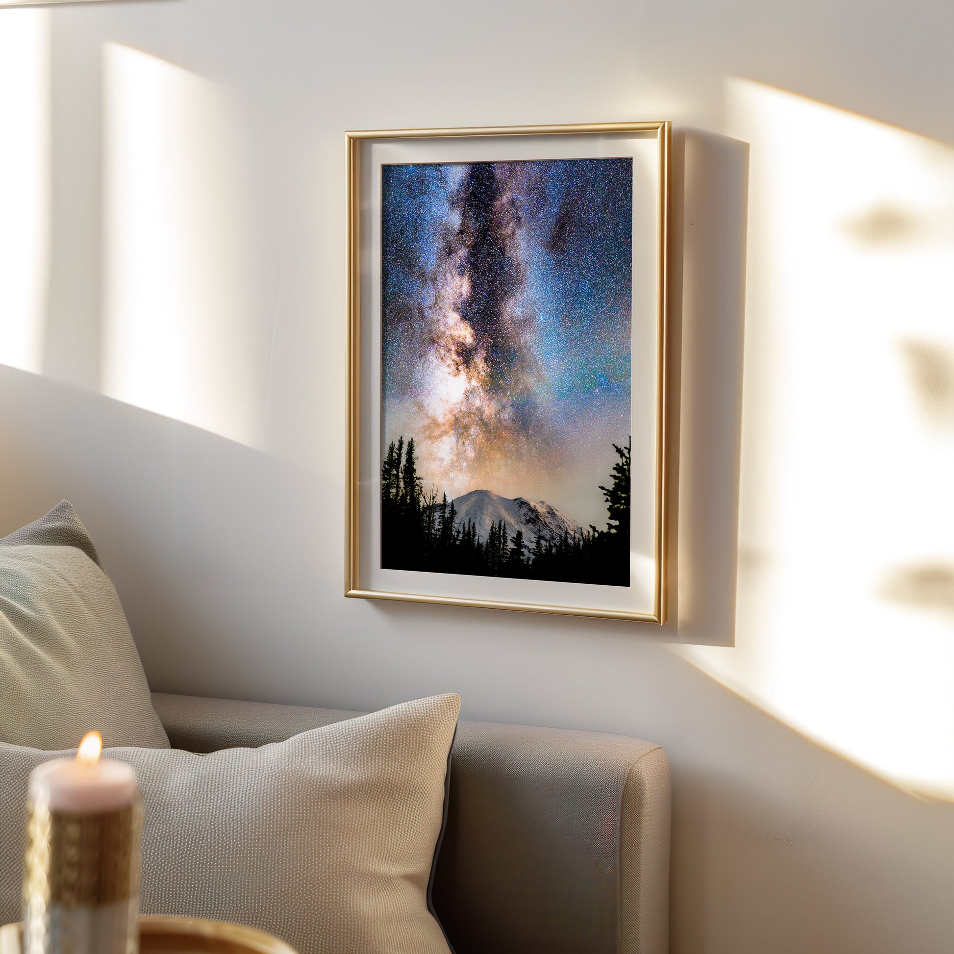 Bring the brilliance of the Pacific Northwest night sky into your home—order your Mount Rainier Milky Way wall art today.